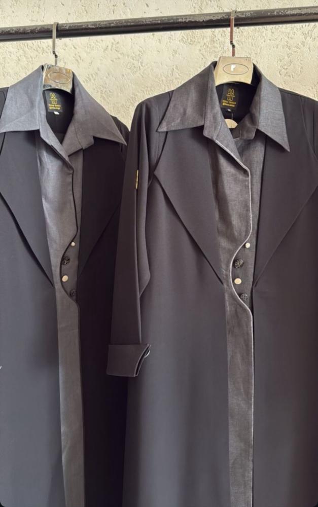 وصف العباية: عباية صيفية مصممة الكريب الـكوري وقميص لنن طبيعي مزينه بأزرار أسود وفضي