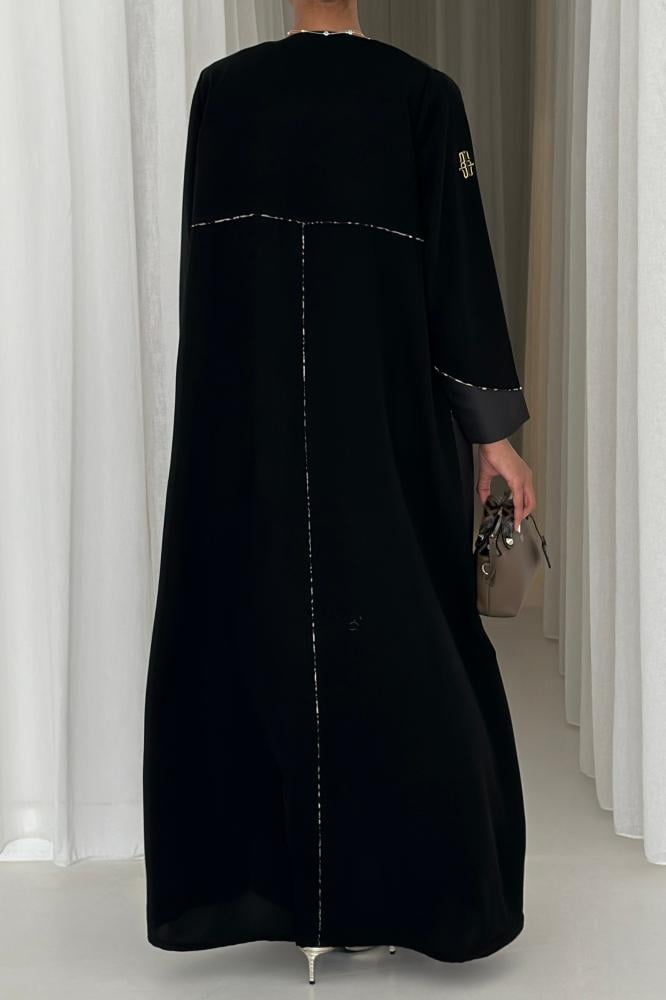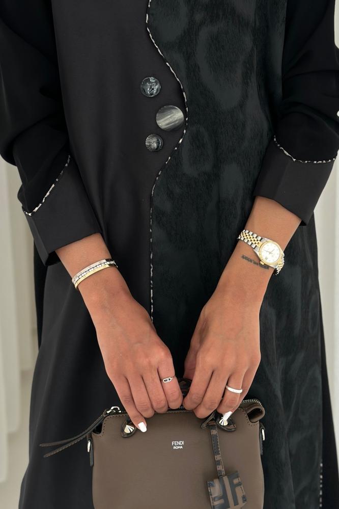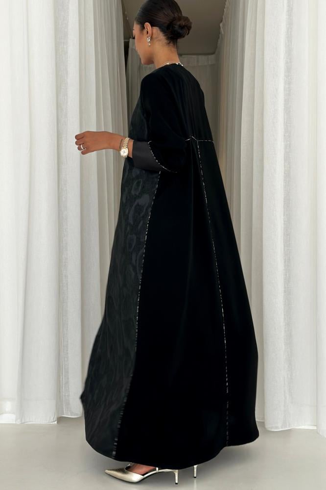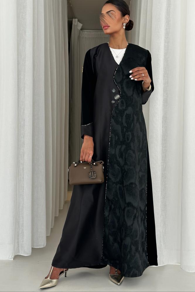 عبايه من الكريب الياباني والتفته مزينه بتطريز