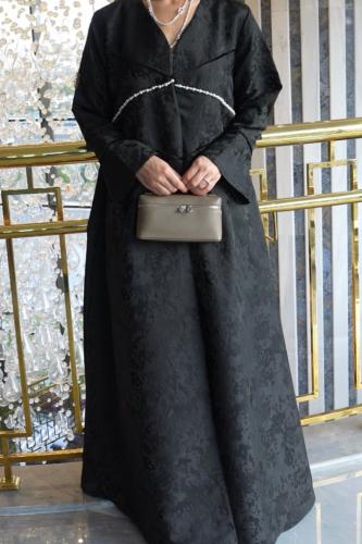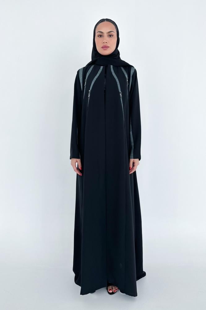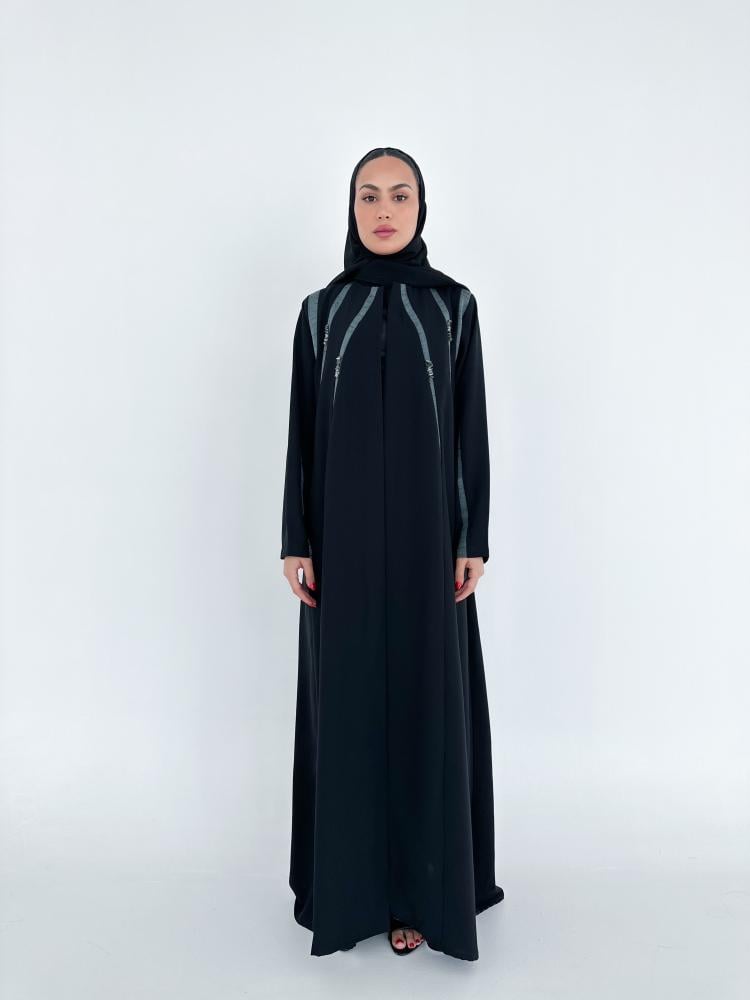 وصف العباية: عباية صيفية من الكريب الكوري بقصات مبطنه التفته الشانتون الاخضر المموج وشك حجر ملون