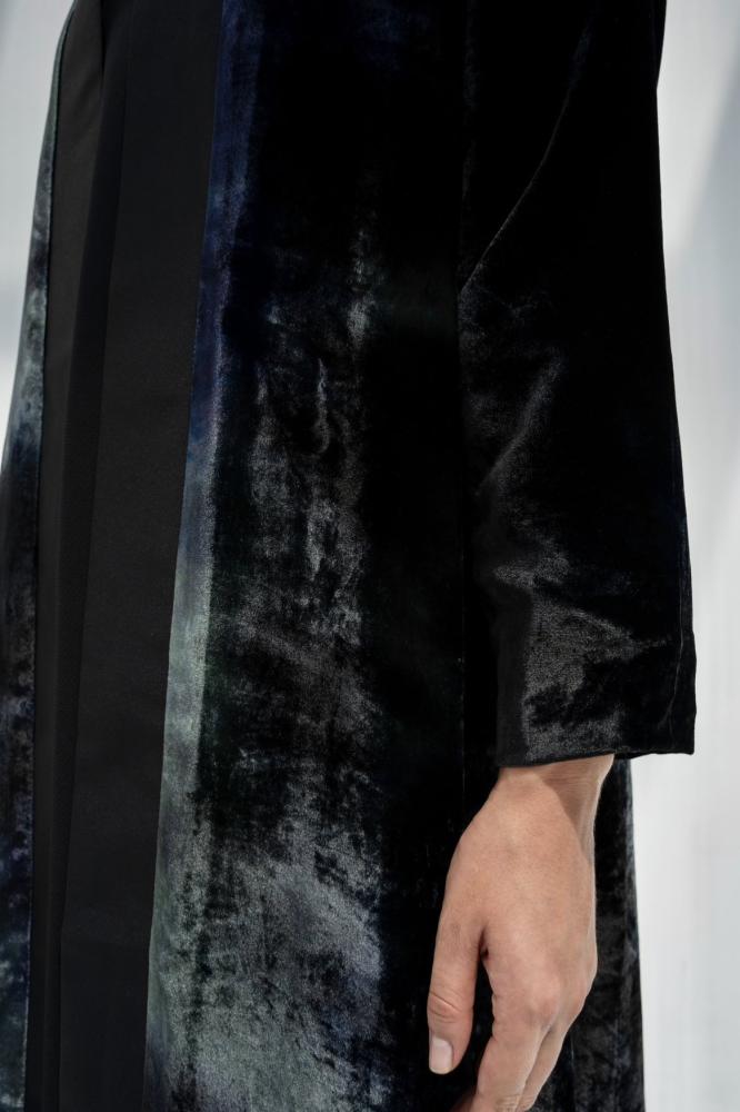 وصف العباية: عباية مخمل أسود كوري مموج بلون فيروزي و لون بنفسجي مبطنه بالكامل
