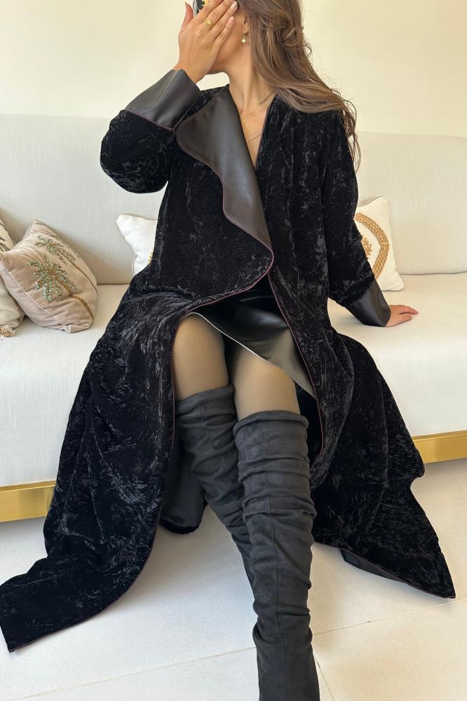 عبايه مخمل مجعد مبطن بتفته #802