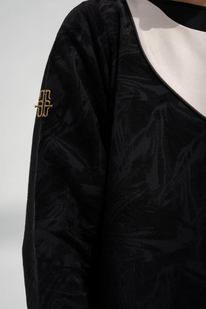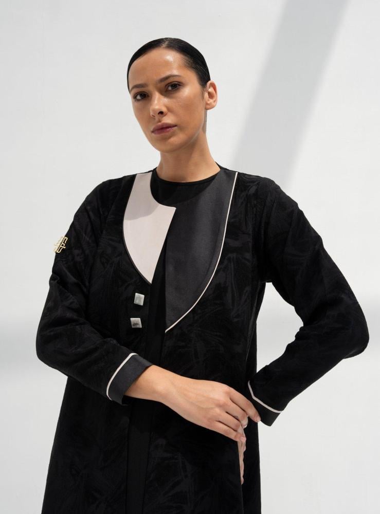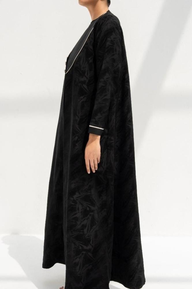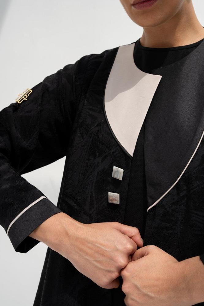وصف العباية: عباية جاكار تركي أسود مزينه بازرار صدف بيج