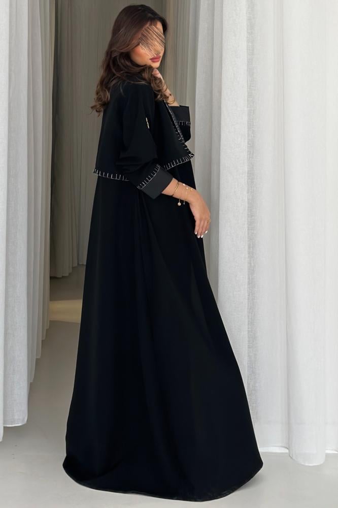 وصف العباية: عباية مصممة الكريب الكوري ( مستورد خصيصًا لعبايات جداء )